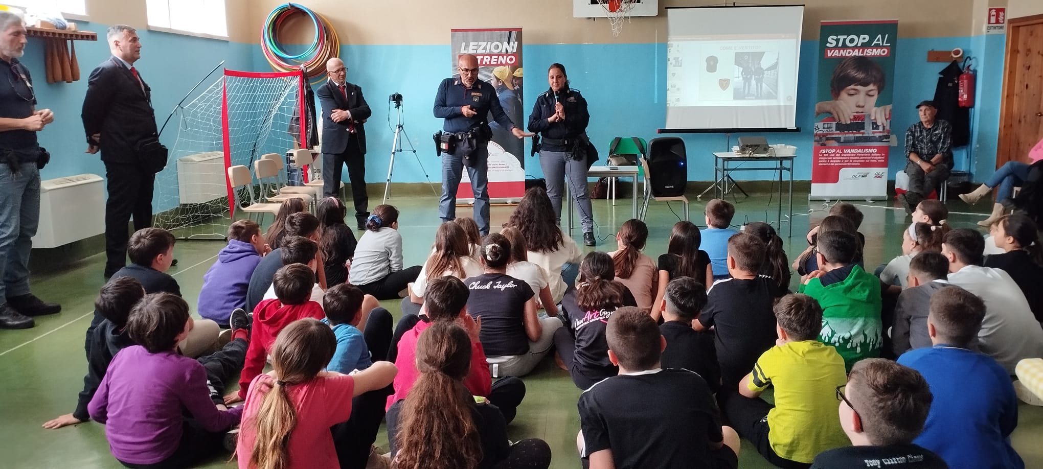 Partecipazione “ad alta velocità” per la manifestazione “Progetto Scuola Ferrovia e Stop al Vandalismo” organizzata oggi, 19 maggio, presso la palestra della scuola De Curtis, che ha visto collaborare l’Associazione Dopo Lavoro Ferroviario, la Polizia Ferroviaria le Ferrovie dello Stato. L’iniziativa,suddivisa in tre incontri, è rivolta agli alunni delle classi quarte e quinte della scuola