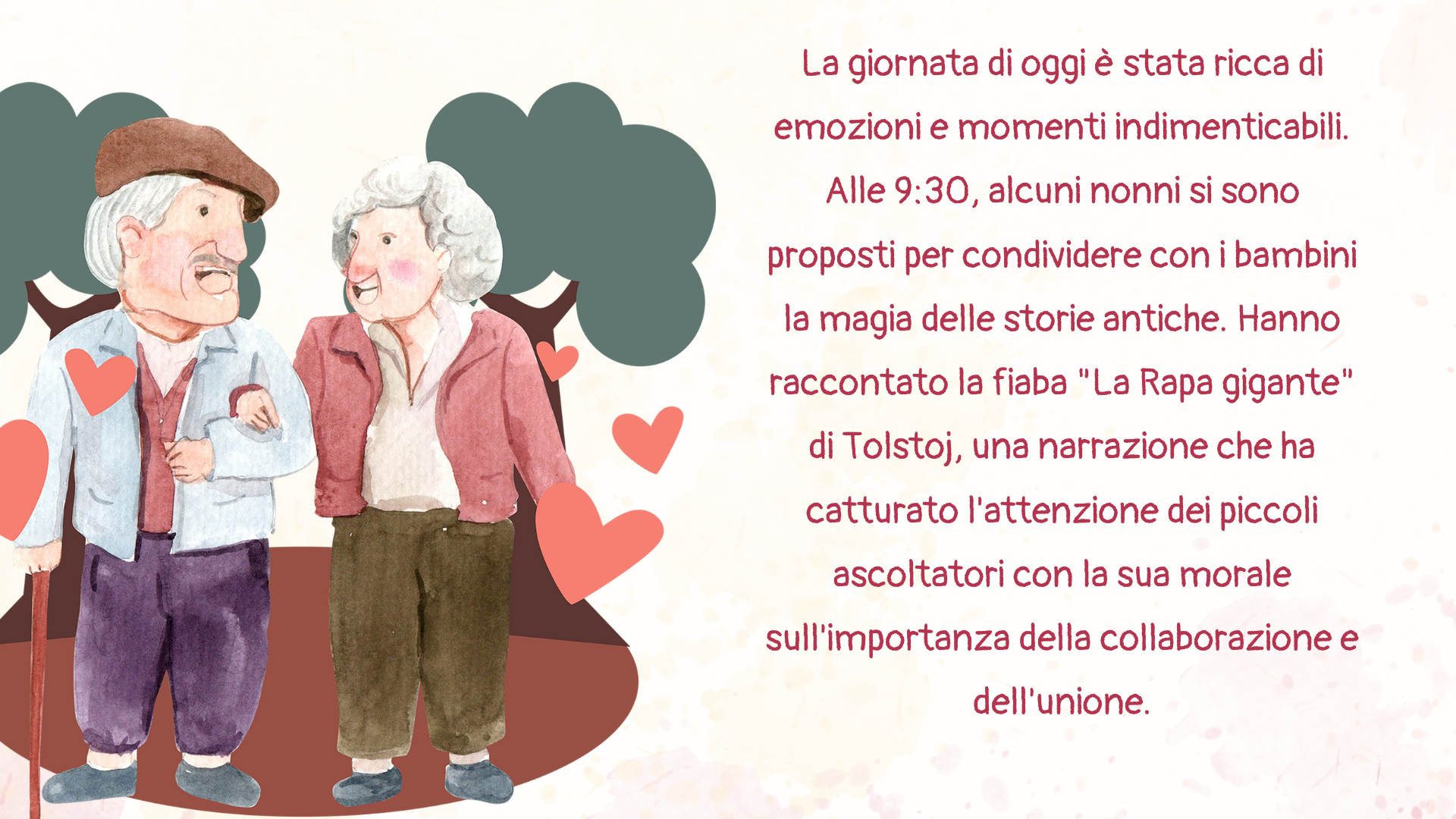 Per la festa dei nonni il 2/10 i nonni dei bambini della scuola dell'infanzia sono andati nelle classi a leggere una fiaba e hanno portato la loro esperienza